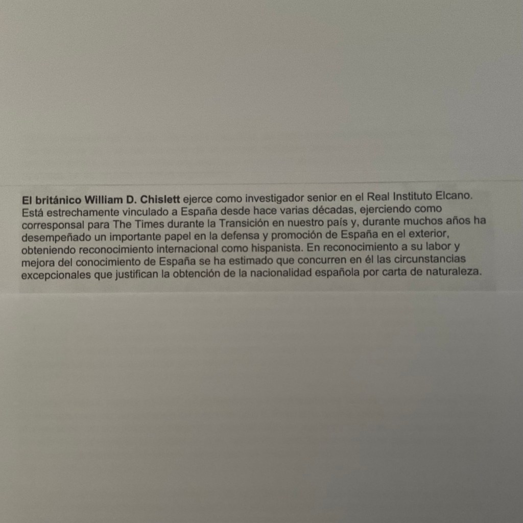 Uncategorized El Gobierno me concede la nacionalidad española por Carta de Naturaleza November 18, 2021December 19, 2021 William Chislett