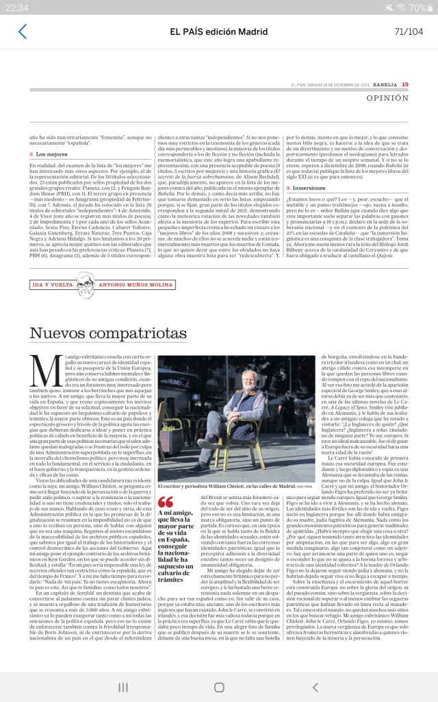 Antonio Muñoz Molina escribe sobre mi nacionalidad española concedida por el Gobierno